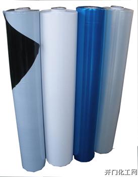 1.PE黑白保护膜  ①性能试验:对物体表面易于贴剥,不移胶,随钢板折弯90°不破裂、不脱落。  ②负重试验:360小时20℃-50℃经受2Kg/2.5cm2载荷剥下无胶残留表面。  ③耐老化试验:300W紫外线灯在50℃的条件照射240小时,不开裂、不变形,撕下表面无残留胶现象。  ④耐潮湿试验1小时光照+1小时雨淋>240小时后不脱落,剥下后表面无残胶。 2.PE黑白保护膜技术参考 厚度(mm) 剥离力(g) 应 用 参 考 0.035 5-15 PET板、PVC板、反光板 0.04 20-60 标牌、透明PVC板、硝基漆罩光面板、 氨基、丙烯酸涂料面板、防盗门 0.04 60-80 彩色钢板、不锈板、有机玻璃板、 PVC平面装饰膜、镜面板、防盗门 0.04 80-120 PVC小花面板、标牌喷沙铝面板、防盗门 0.05-0.06 120-140 彩色钢板、不锈钢板、 PVC面板、标牌、大理石 0.05-0.06 140-180 PVC装饰板、塑钢门